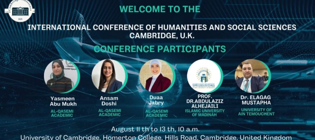 - At the International Conference on Humanities and Social Sciences, held at the University of Cambridge on August 11, 2025, students Ansam Dousha and Doaa Ja’abari presented their study entitled “The Impact of Employing Artificial Intelligence Applications on Self-Learning among Integrated Students.”